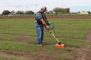 In the winter wheat varieties tested at the Uvalde center, the top two ‘picks’ were ‘TAM 305’ and ‘TAM 304’ out of 10 varieties evaluated. Two of the varieties: ‘TAM 112’ and ‘Fannin’ yielded the lowest, due to susceptibility to leaf rust infection. In relatively wet years, planting winter wheat under deficit irrigation or dry-land would not cause a significant yield loss in southwest Texas. Based on field tests conducted in Uvalde and Amarillo, we found a better way to predict leaf water use efficiency. Rather than evaluating the bulk leaf carbon isotopes, the team found leaf wax alkane concentration and compound-specific carbon and hydrogen isotopes best for predicting water use.